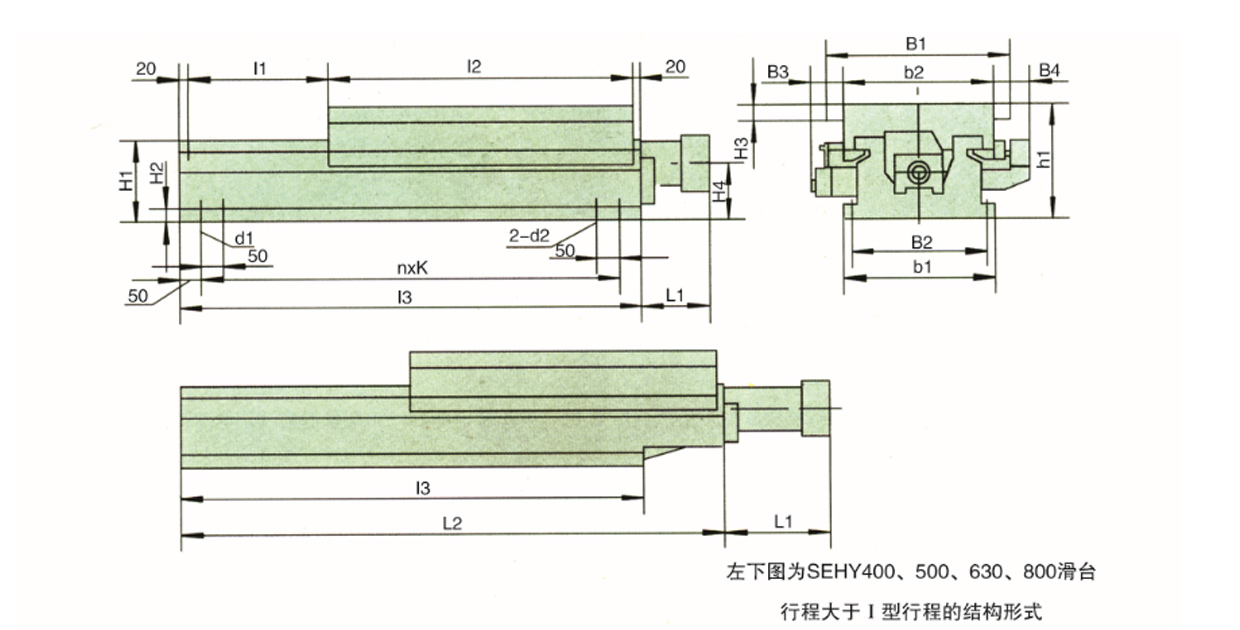 該系(xì)列液壓滑(hua)台是引進(jìn)德國Huller Hiller**滑台(tai)。本液壓滑(huá)台是用來(lai)實現進給(gěi)運動的動(dòng)力部件。根(gen)據被加工(gōng)零件的工(gōng)藝要🔞求,在(zài)其配上不(bú)同形式的(de)切削頭和(hé)支承部件(jian)組成組合(he)機床,可完(wán)成鑽孔、擴(kuo)孔、鉸孔、镗(tang)孔、車端面(mian)、銑削及攻(gong)絲工序。滑(hua)台配有分(fen)級進給裝(zhuāng)置,可完成(cheng)深孔加工(gong)。本系列滑(hua)台可用于(yú)卧式或立(lì)式機床的(de)配套使☁️用(yong)。
